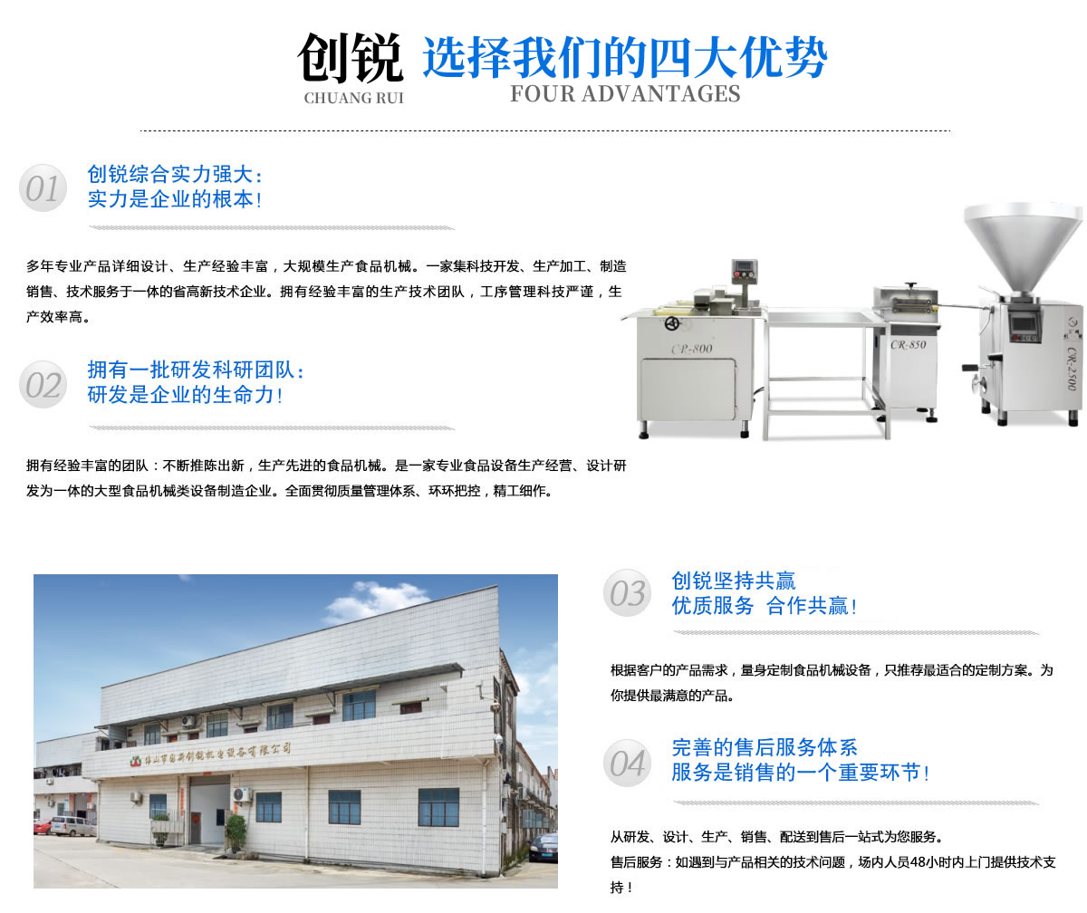 Foshan Guoxin Chuangrui Electromechanical Equipment Co., Ltd. is an intelligent food machinery equipment manufacturer which is engaged in R&D, manufacturing, sales and technical services of machinery equipment. The company has won the praise and trust of users for many years for its novel products, high degree of automation and excellent quality.